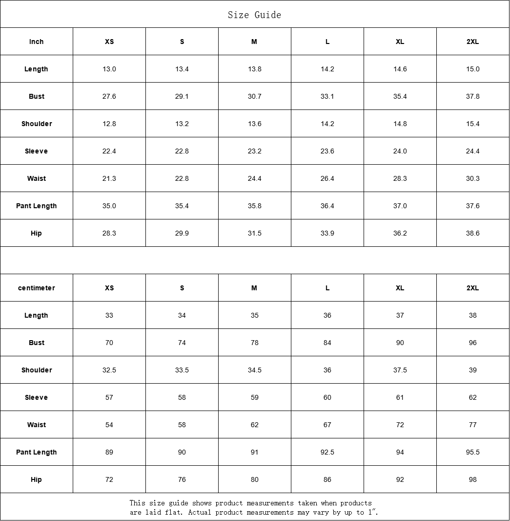 This size guide shows product measurements taken when products are laid flat. Actual product measurements may vary by up to 1".