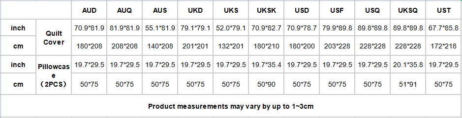 • Production including one quilt cover with zipper fasten and two pillowcases,and insert not included.